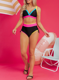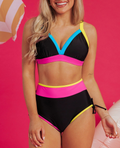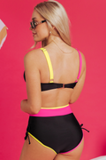 This black color block outfit features a flattering V-neck and a high waist design that enhances your silhouette. The drawstring side detail allows for a customizable fit, combining style with comfort. Ideal for those seeking a sleek, modern look with expert tailoring.
