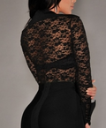 Black Sheer Lace Long Sleeve Bodysuit