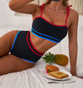 Elevate your swimwear collection with this Black Triple Color Trimmed High Waist Bikini Set. Designed for a flattering fit, the high-waist bottoms provide comfortable coverage while accentuating your silhouette. The triple color trim adds a sophisticated contrast, enhancing the sleek black fabric with a modern, stylish edge. Perfect for confident beach or poolside wear, this set combines classic design with contemporary detailing for a refined look.