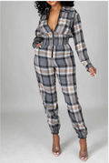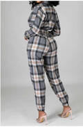 Grey Checkered Long Sleeve Jumpsuit