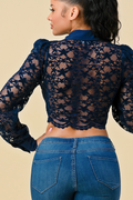 Elevate your wardrobe with this Lace Crop Top Blouse, expertly crafted to combine delicate lace detailing with a flattering cropped silhouette. Designed for both style and comfort, it offers a breathable fit ideal for layering or standalone wear. Perfect for pairing with high-waisted bottoms, this blouse adds a refined, feminine touch to any outfit.