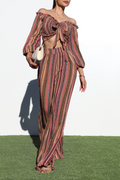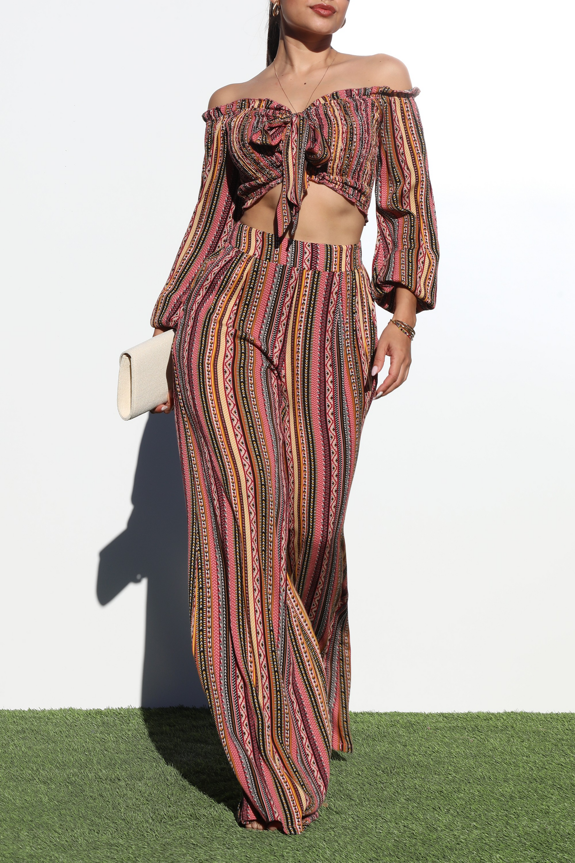 Elevate your wardrobe with this Multi Color Off Shoulder Pants Set, designed for a sophisticated yet vibrant look. The off-shoulder top offers a flattering silhouette, while the coordinating pants provide comfort and style. Perfect for both casual outings and special occasions, this set combines bold colors with expert tailoring to ensure a polished appearance.