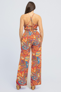This Tropical Print Halter Top Pants Set combines vibrant patterns with a comfortable fit, perfect for warm-weather occasions. The halter top offers a flattering neckline, while the matching pants provide ease of movement and style. Ideal for casual outings or beachwear, this set balances fashion and functionality effortlessly.