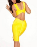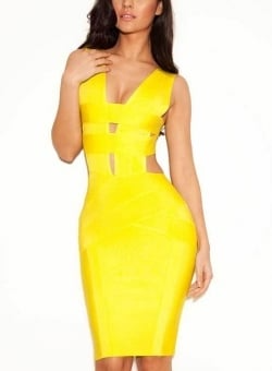 This Yellow Bandage Dress offers a sleek, form-fitting silhouette designed to enhance your natural curves. Crafted with stretchable fabric, it provides both comfort and support, making it ideal for evening events or special occasions. Its vibrant yellow hue adds a bold, confident touch to your wardrobe, ensuring you stand out with elegance and style.